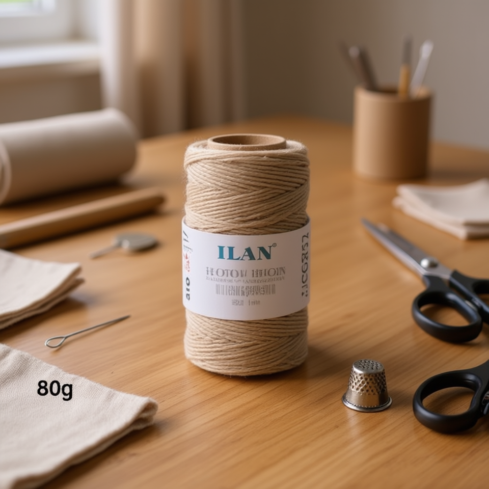 Bobina di Filo di Cotone Iln 80g 1.5mm Colore Naturale per Cucito