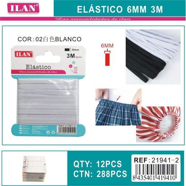 Fascia elastica Iln 6 mm 3 m bianca per cucito e artigianato