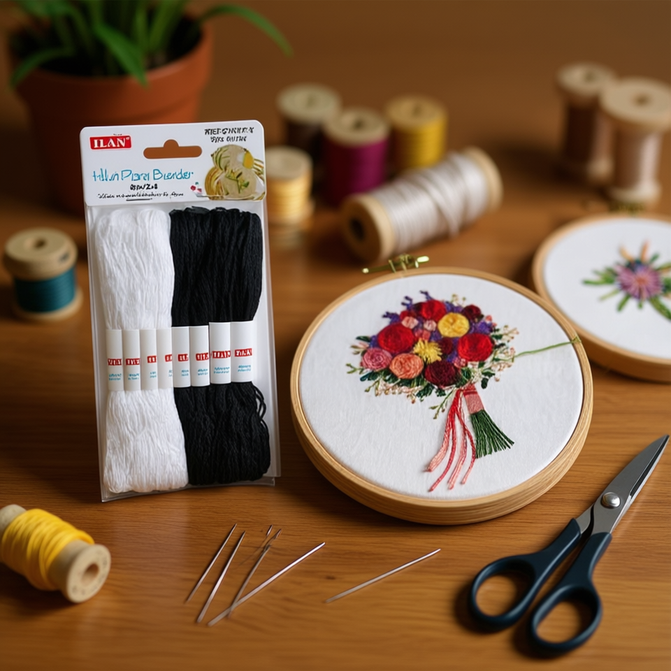 Filo da ricamo Iln 30s/2*6 Nero Bianco 8 pezzi circa per cucito a mano e artigianato