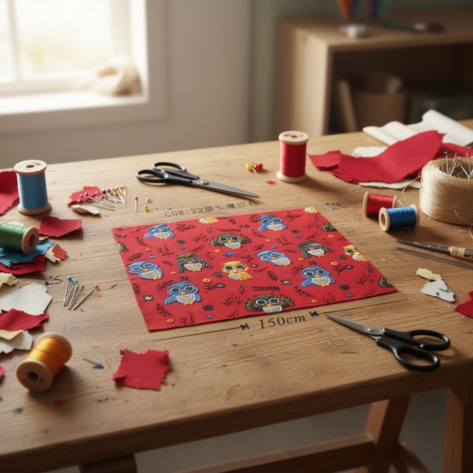 Accessorio in tessuto Iln 100 cm x 150 cm con stampa di gufo rosso per lavori artigianali