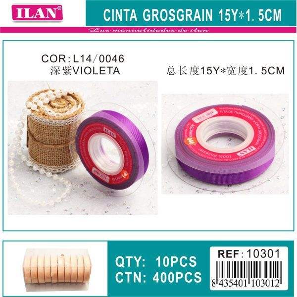 Nastro Grosgrain Iln 15Y 1.5Cm Viola per Decorazioni e Artigianato