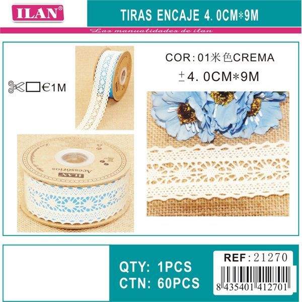 Strisce di pizzo Iln 4,0 cm x 9 m colore crema per artigianato e cucito