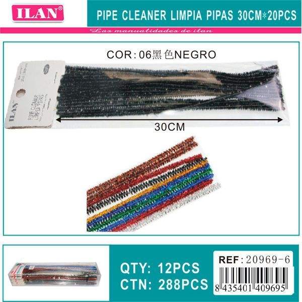 Pulisci tubi Iln 30 cm, nero metallizzato, con filettatura, 20 pezzi per la creazione di lavori artigianali