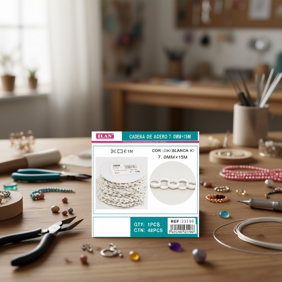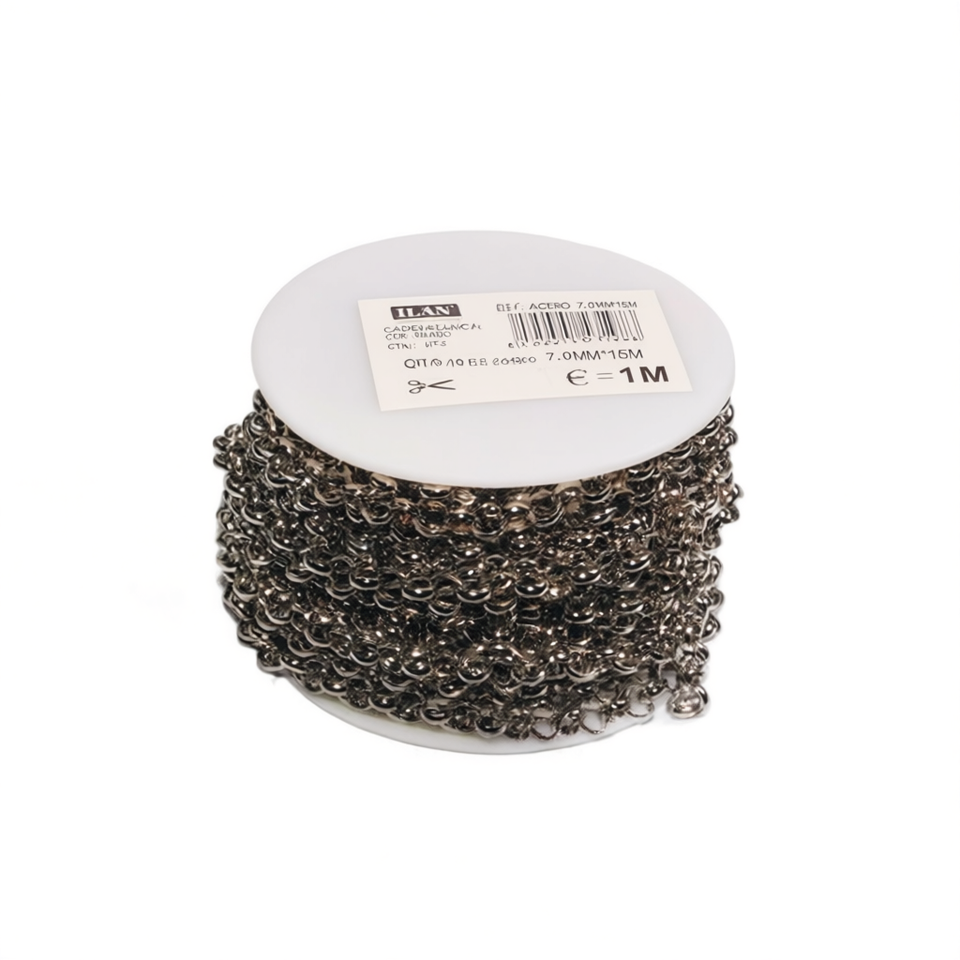 Catena in acciaio inossidabile 7 mm x 15 m colore bianco per artigianato e creazione di gioielli