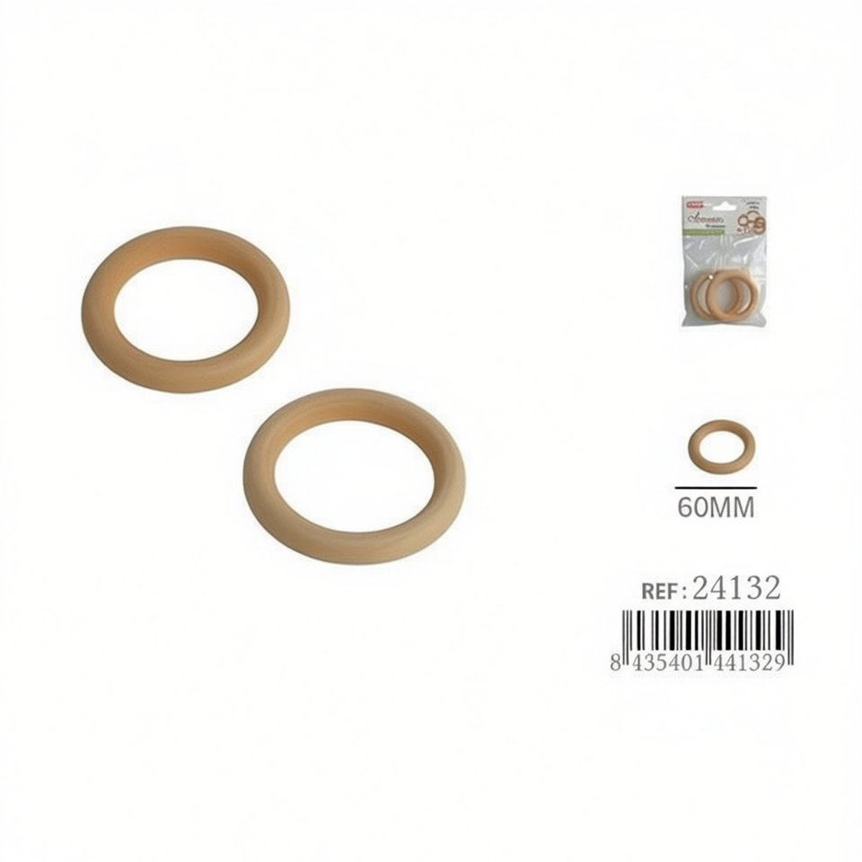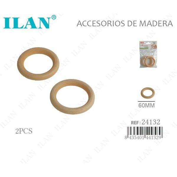 Anelli in legno Iln da 60 mm, 2 pezzi, per artigianato e accessori per cucito