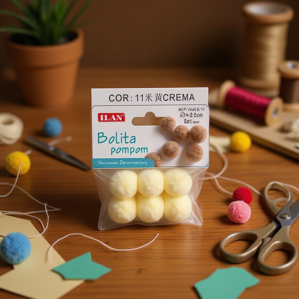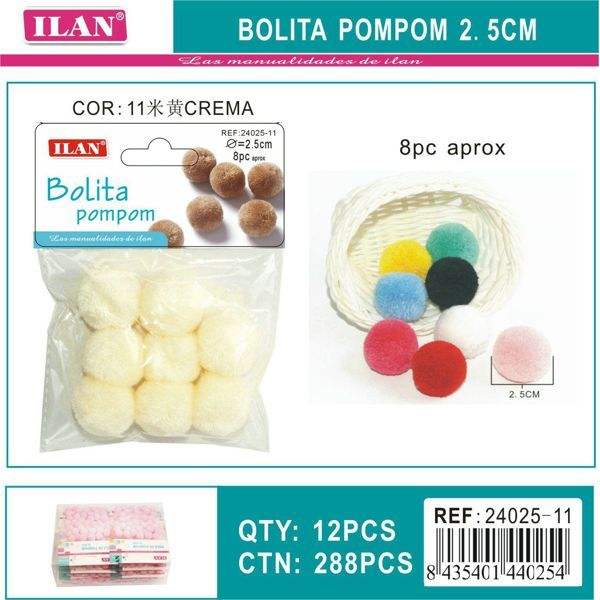 Pompon in Lana 2,5 Cm Crema per Decorazioni Artigianali