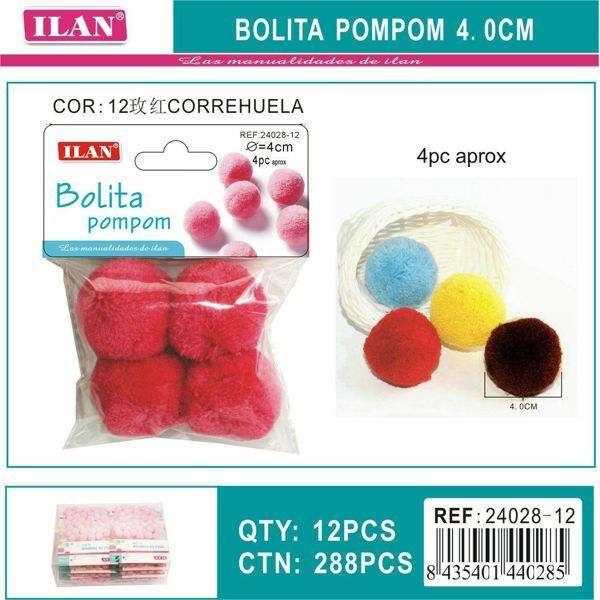Pompon in Lana 4.0 Cm Colore Fucsia per Decorazioni Artigianali
