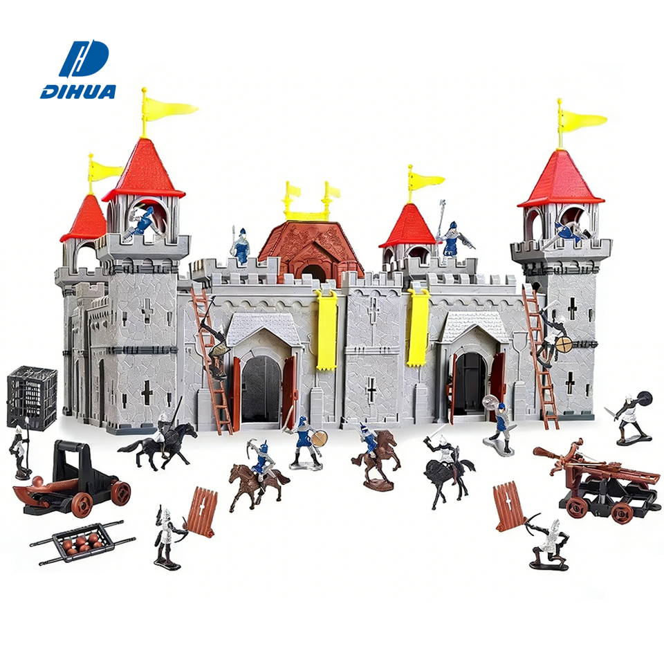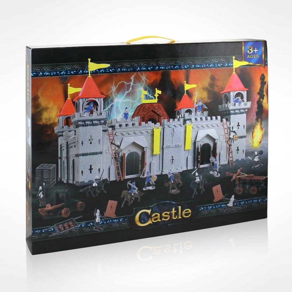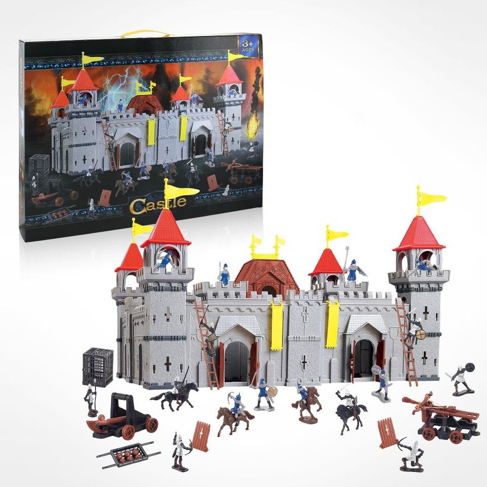 Fantasioso gioco per bambini giocattolo educativo soldati di plastica con Cool Large Knight' Kingdom castelli e figure versione A argento/nero