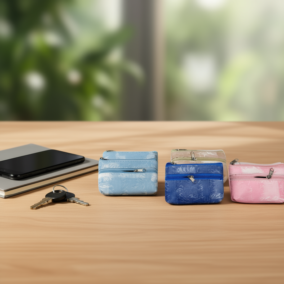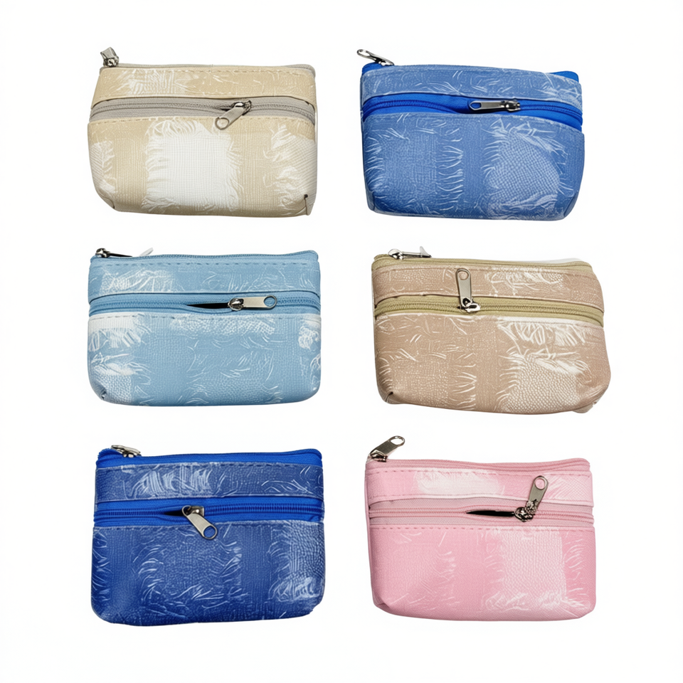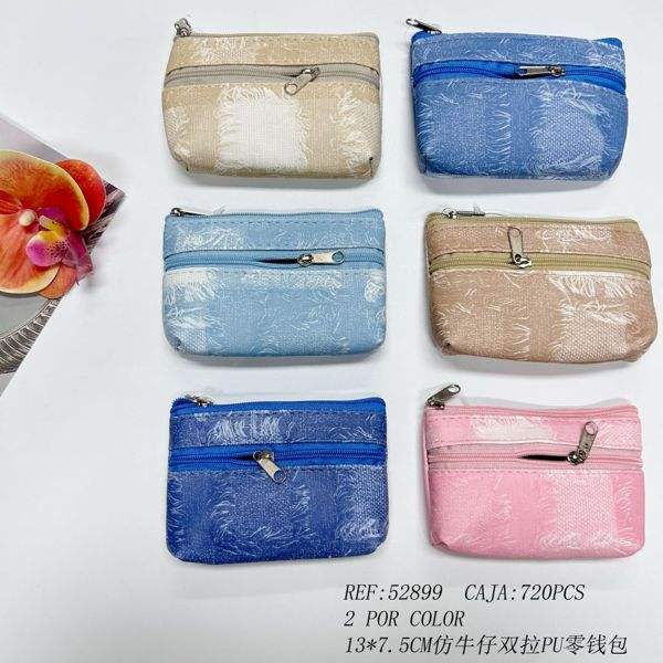 Portamonete in PU con doppia cerniera in simil denim 13x7,5 cm Tabella colori brillanti F3623 Monedero