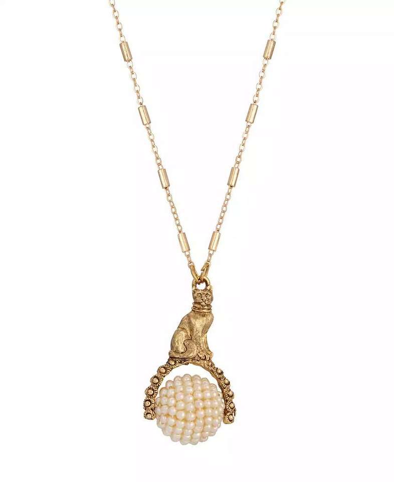 Collana con Ciondolo Girevole a Forma di Gatto con Perle Imitate | 2028