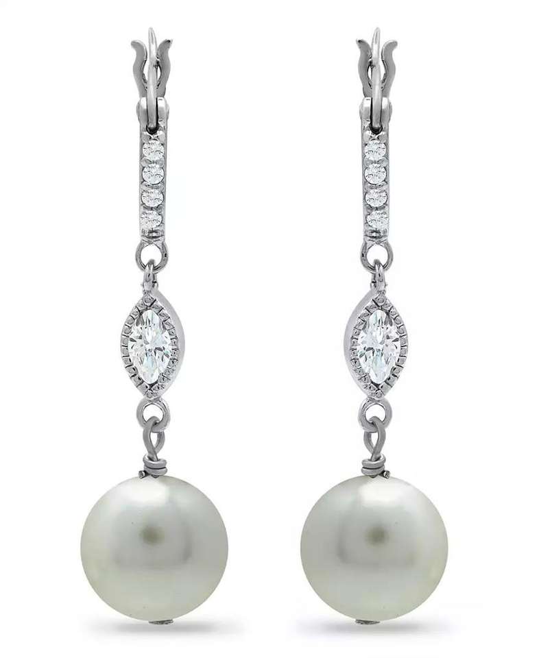 Imitation Pearl Cubic Zirconia Art Deco Linear Earrings Crafted in Silver Plate | Macy's