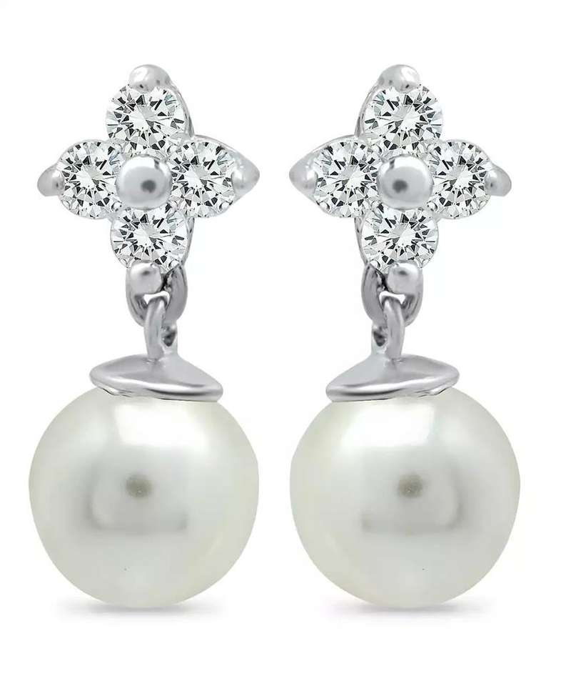 Orecchini pendenti in zirconi cubici con perla imitazione e grappolo realizzati in piatto d'argento | Macacy's