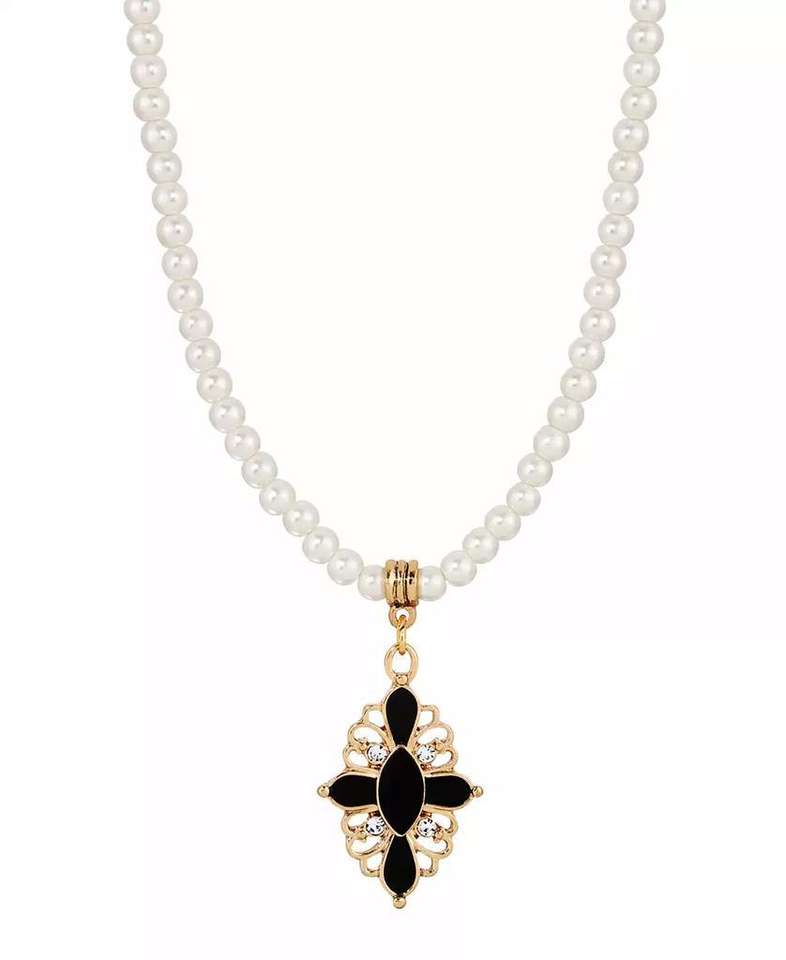 Collana con pendente ovale in finta perla e cristallo Jet | 2028