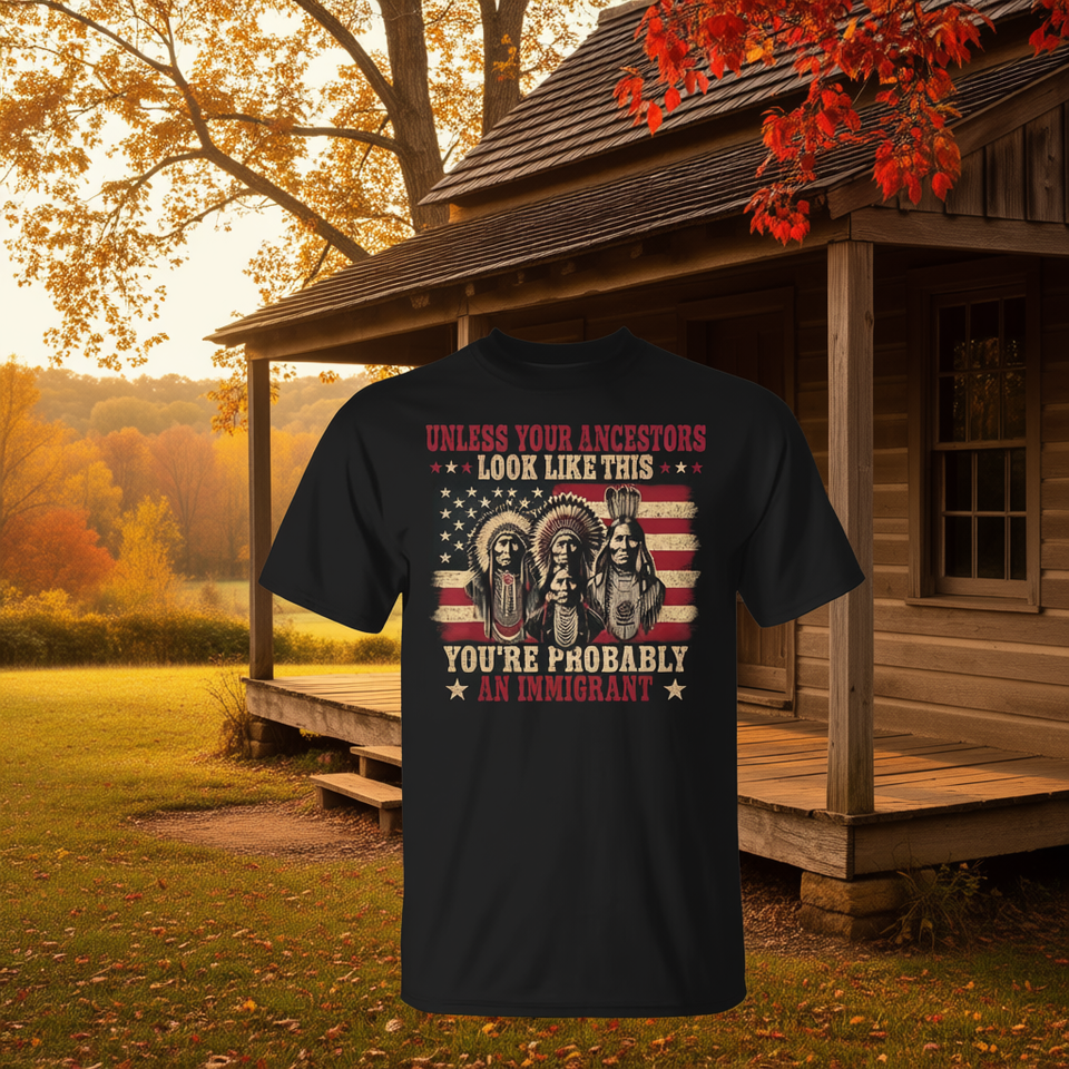 Maglietta per Immigranti: Promozionale, per tutte le provenienze, a meno che i tuoi antenati non sembriano così. Se sei un'immigrante, allora questa è la tua maglietta.
