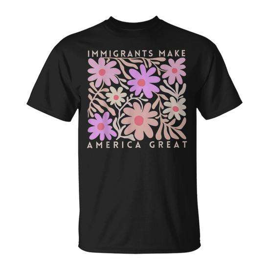 T-shirt retrò con stampa floreale per donna: Gli immigranti rendono l'America grande