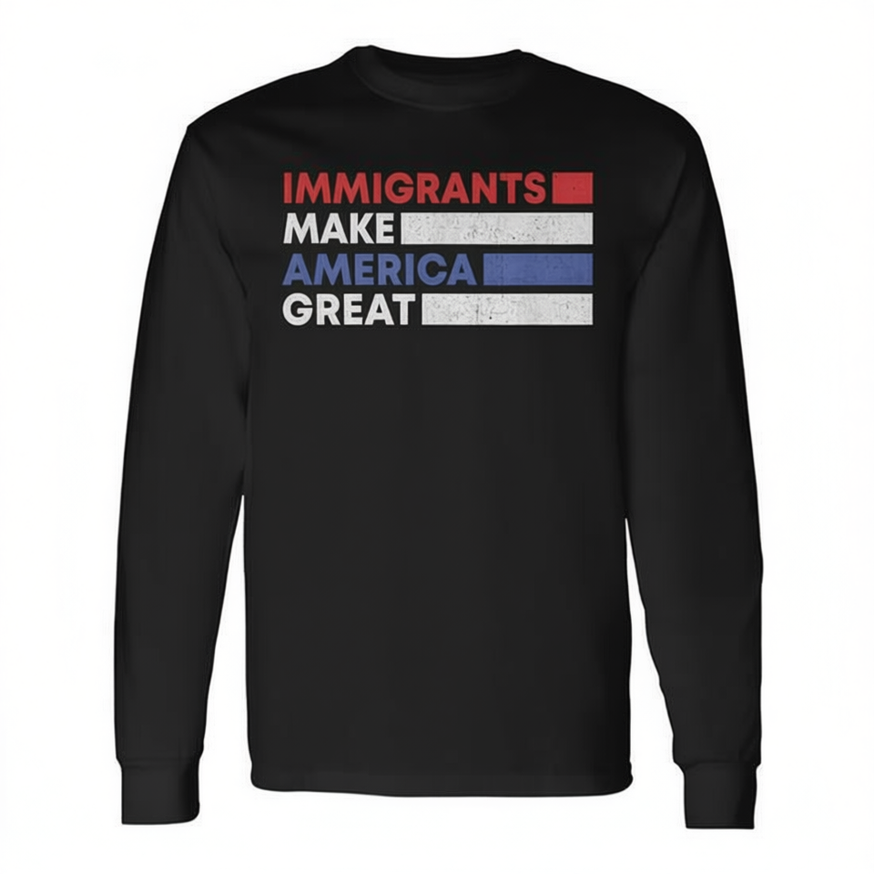 Maglietta a Maniche Lunghe 'Immigrants Make America Great' Abbigliamento Promozionale Pro-Immigrazione