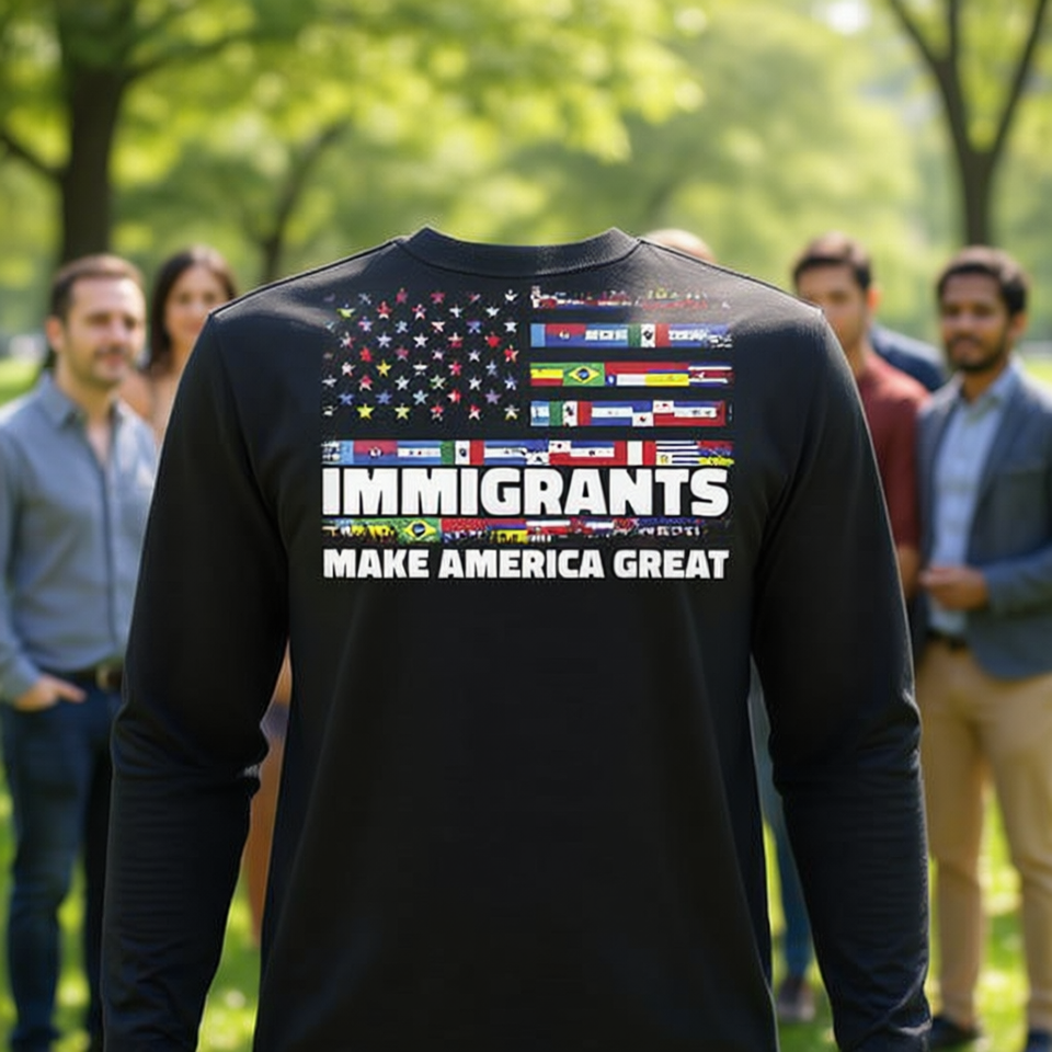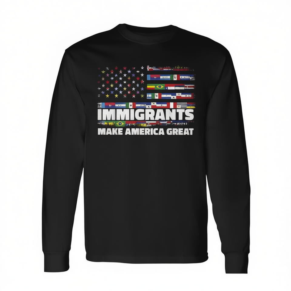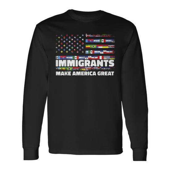 Maglietta a maniche lunghe con design della bandiera degli Stati Uniti: Gli immigranti rendono l'America grande