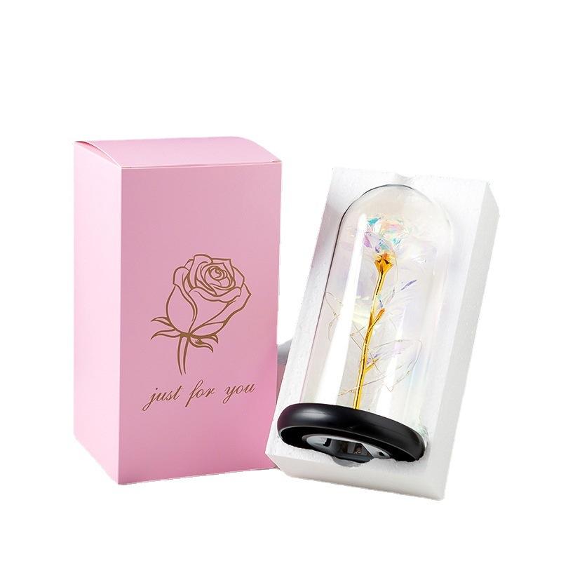 Immortal Glass Lampshade Rose Valentine's Day Mother's Day Gift 24K Simulation Flower Decoration Ornament Factory Direct Supply