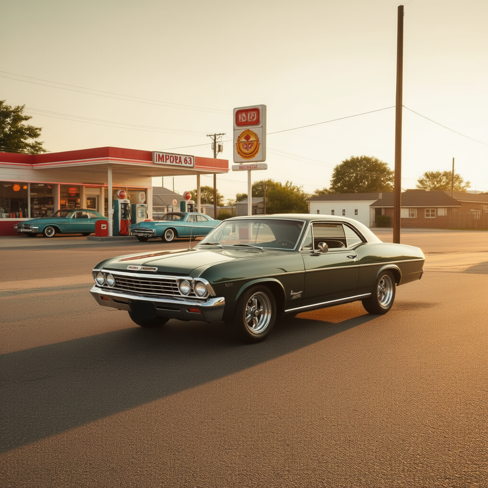 T-shirt a maniche lunghe Impala 63 con design Muscle Car e grafica auto classica