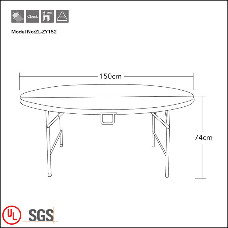 DIA150 * 74 CENTIMETRI/tavolo pieghevole in plastica