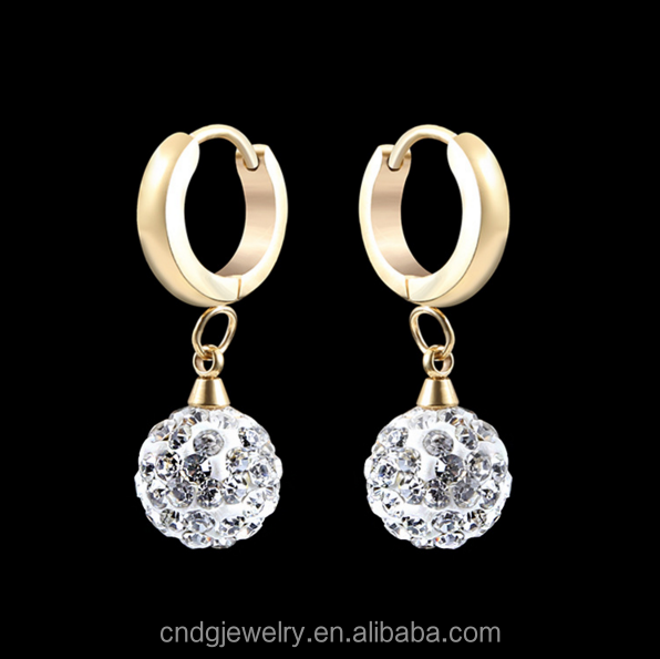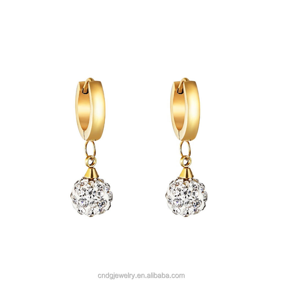 Importa gioielli dalla cina orecchini pendenti in oro alla moda con Design a sfera di cristallo orecchini a goccia lunghi con Pom Pom
