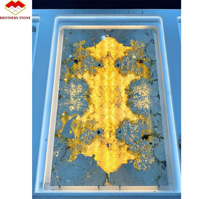 Imported Brazil Patagonia Granite Wall Stone Slab Cream Natural Bookmatch Quartzite Pandora Lighting Background for Living Room