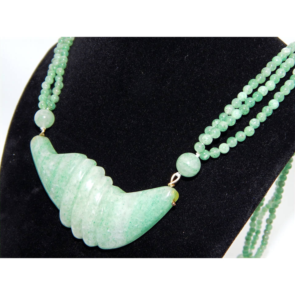 Imposing Beaded Jade Necklace with Sculpted Jade Medallion
