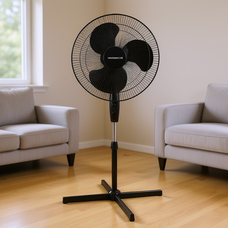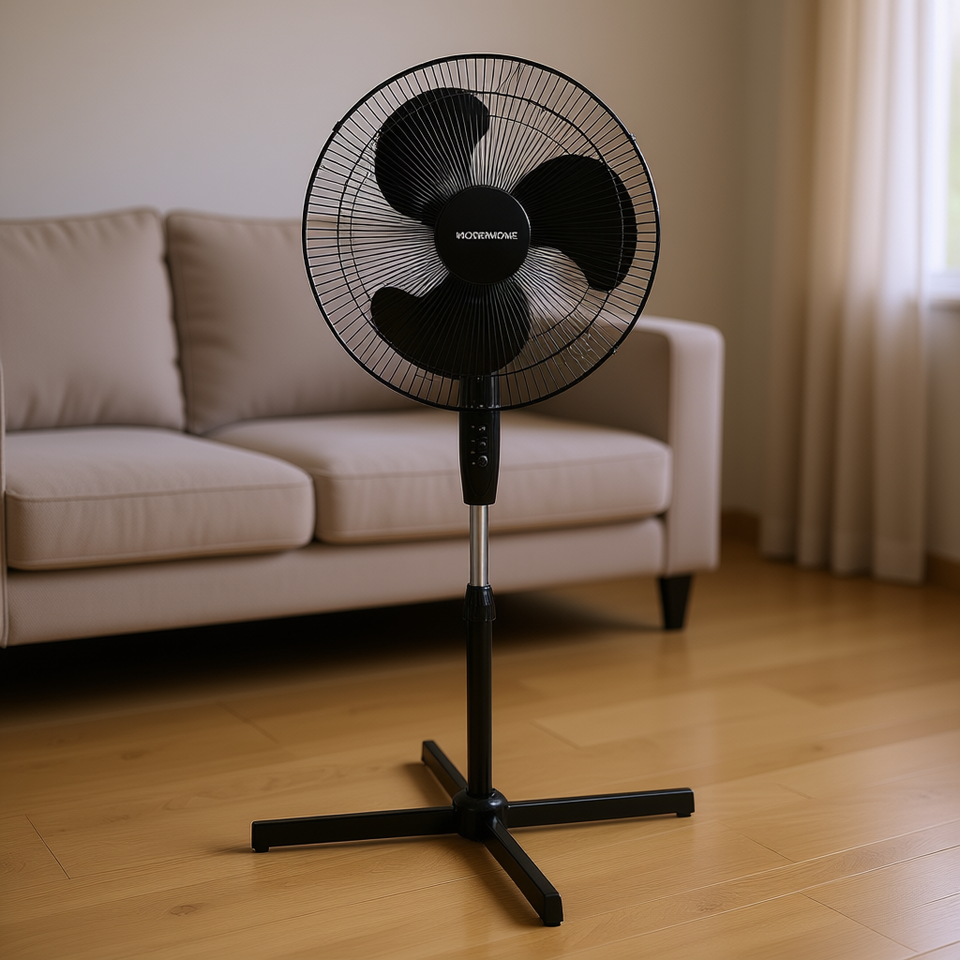 Modernhome 16 Inch Pedestal Fan With Oscillation Adjustable Height Three Speeds Black Metal AC Motor Household Use