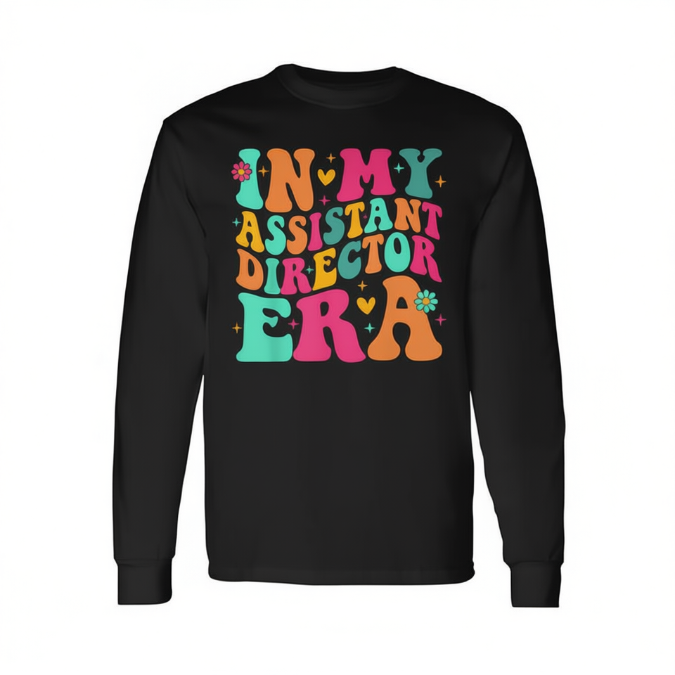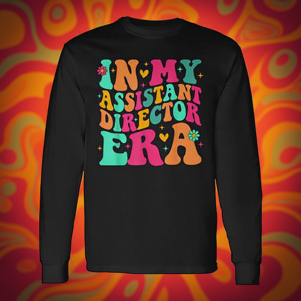 Maglietta a maniche lunghe In My Assistant Director Era con design accattivante, testo colorato e frasi divertenti