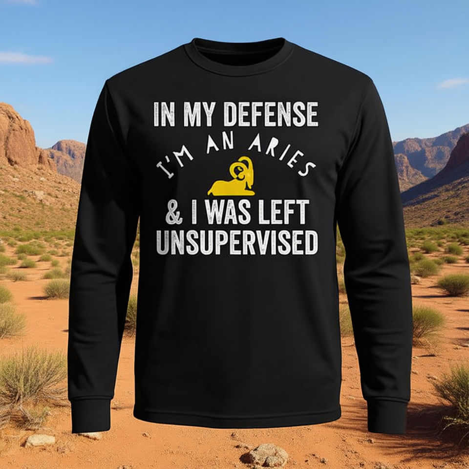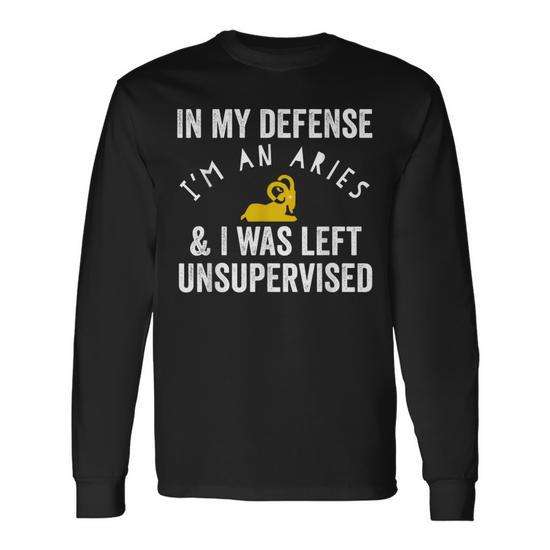 In mia difesa, sono un'Ariete, maglietta a maniche lunghe con design Zodiac Ram, taglia unisex per adulti