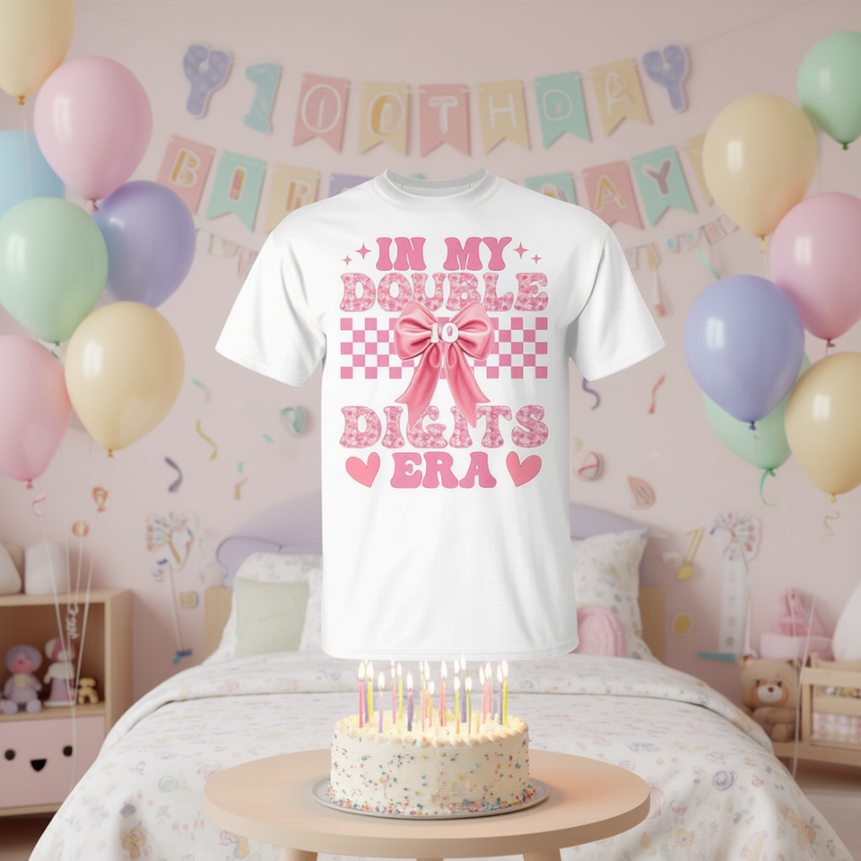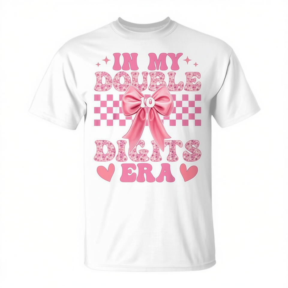T-shirt da ragazza con fiocco coquette per il 10° compleanno di In My Double Digits Era