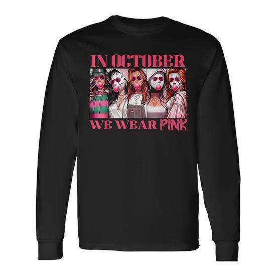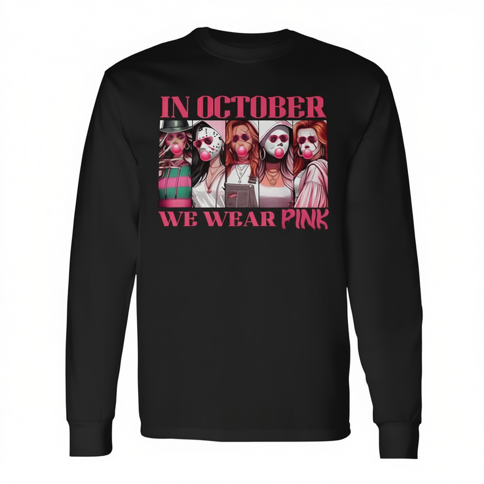 Nel mese di ottobre indossiamo una maglietta unisex a maniche lunghe in cotone ecologico rosa per la sensibilizzazione sul cancro al seno