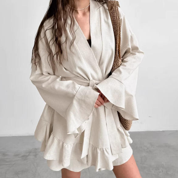 Disponibile Set Pigiama da Donna in Cotone e Lino con Volant Comodo e Ampio a Maniche Lunghe Nuovo Lussuoso Abbigliamento da Casa