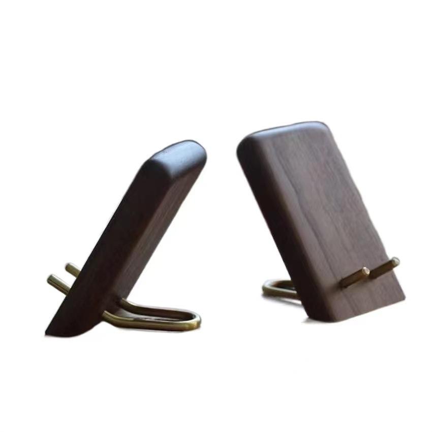 In Stock Creative Walnut & Brass Stand Simple Portable Solid Wood Phone Holder with Double Tiers Gift