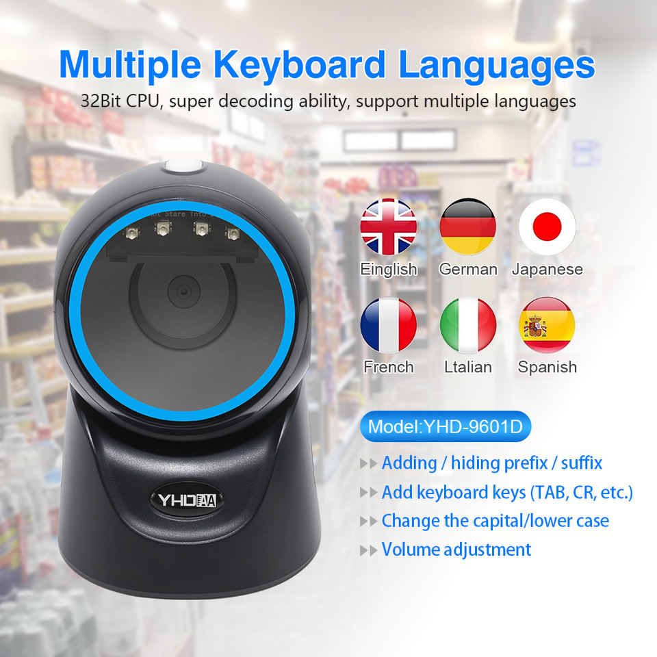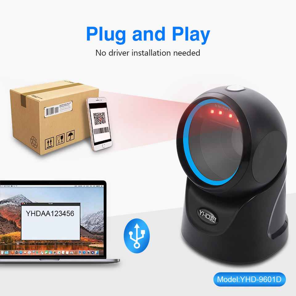 Scanner di Codici a Barre da Tavolo 2D CMOS Omnidirezionale USB per Sistemi POS, Supermercati e Ospedali