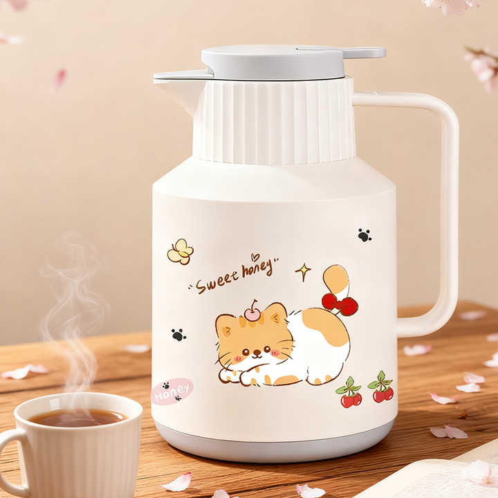 Disponibile Thermos Ecologico con Guscio in Plastica e Interno in Vetro 1500ml/2000ml Caraffa Termica Sottovuoto per Caffè con Coperchio in PP