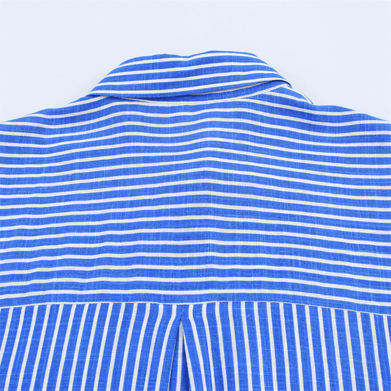 In Stock camicetta Casual a maniche lunghe a righe blu monopetto monopetto Casual da donna