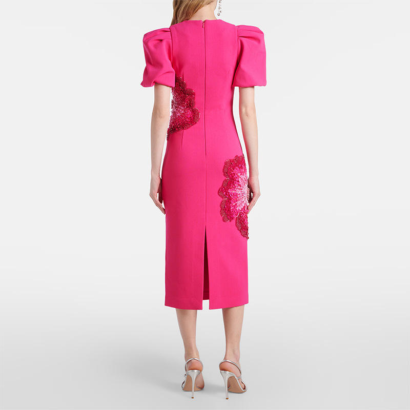In Stock di pregio lavorazioni con paillettes a fiori manica corta o collo a vita da donna per feste abito In tinta unita Midi da donna