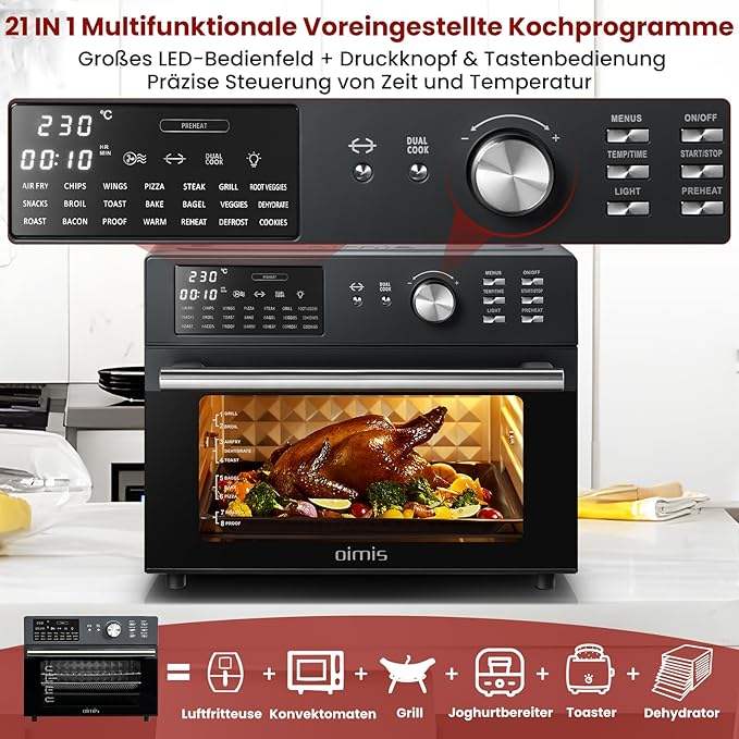 In magazzino Oimis friggitrice ad aria calda XXL 30L 1800W Mini convezione forno 21-in-1 elettrico forno per Pizza con 7 accessori