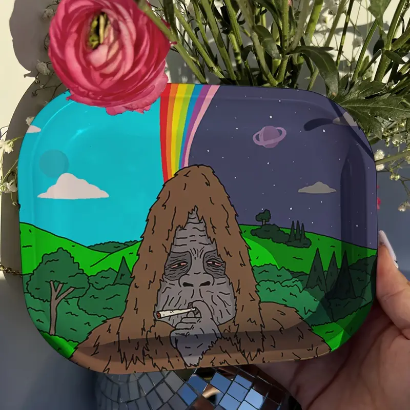 Disponibile Subito: Vassoio Portatile per Erbe Aromatiche Alien da 18x14cm, Vari Design, Prezzo Conveniente, Personalizzabile, Piccolo Vassoio in Latta per Tabacco