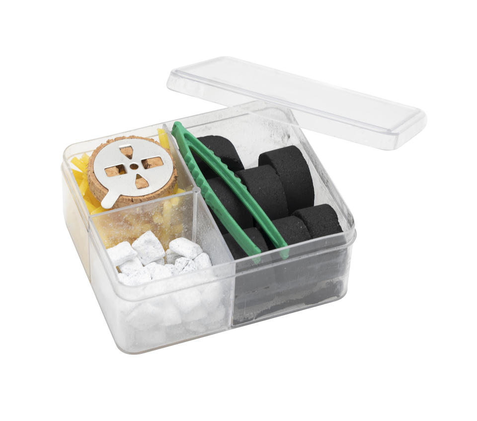 Ogni scatola contiene:Incenso, carbone, stoppino e sughero galleggiante