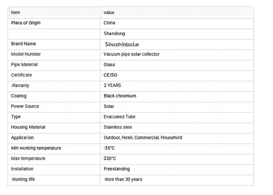 Tipo di collezionista:Tubo di Vetro Sottovuoto