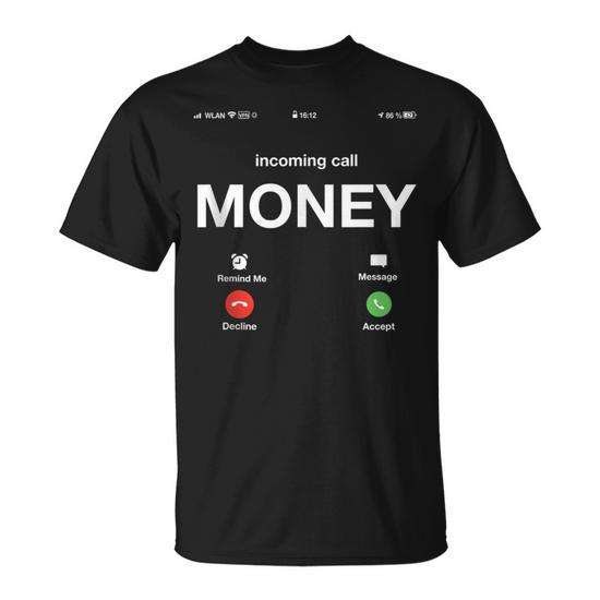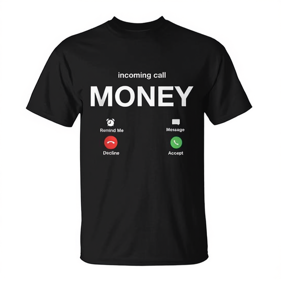 T-shirt nera da uomo con stampa grafica 'Money Calling', design divertente, abbigliamento casual