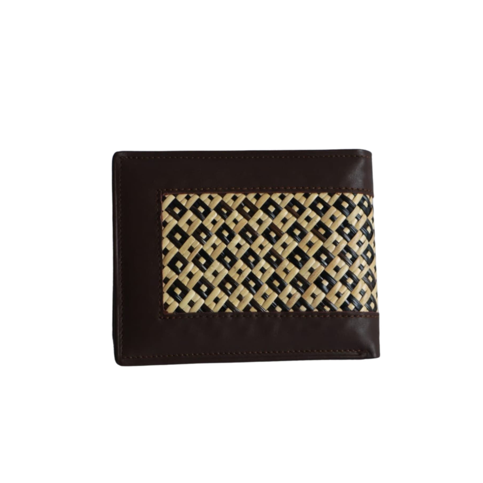 Indang Apang Galeri Men's Genuine Leather Wallet with Rattan Mix Open Closure Type Portable-Original Product From Indonesia