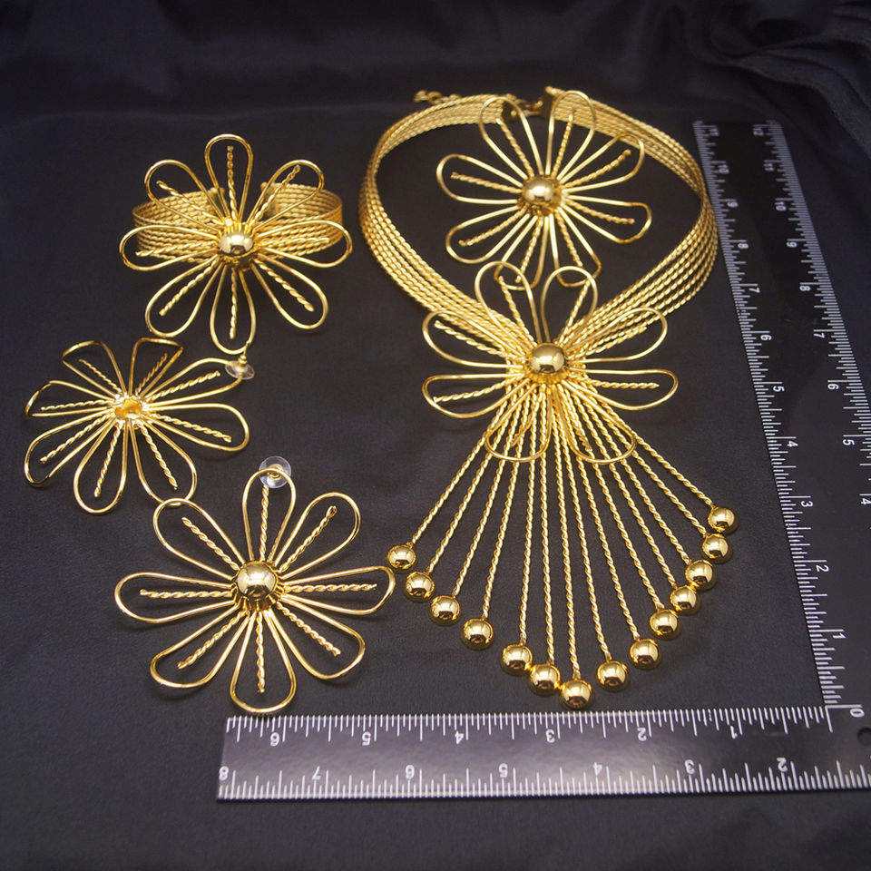 Set di Gioielli Indiani Placcati Oro 24k, Design Brasiliano di Alta Qualità, Grande Collana per Feste, Regalo per Donne