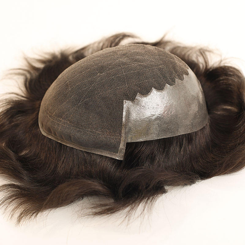 Protesi capillare da uomo in capelli umani indiani, con base in pizzo e PU, sistema Q6.