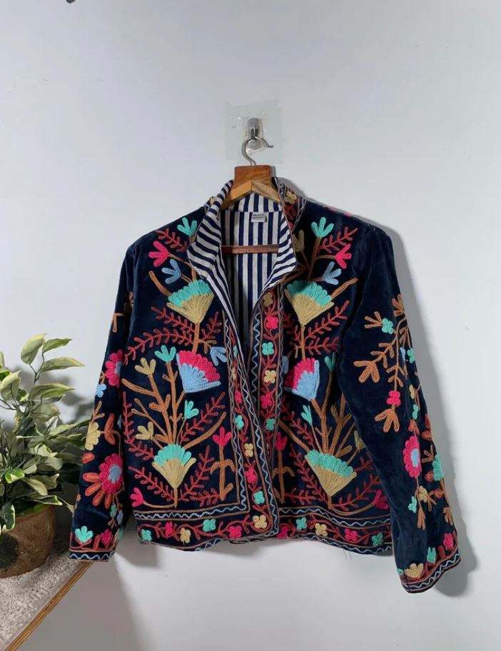 Giacca Suzani Ricamata di Produzione Indiana, Abbigliamento Tradizionale con Dettagli Autentici, Disponibile per Forniture all'Ingrosso