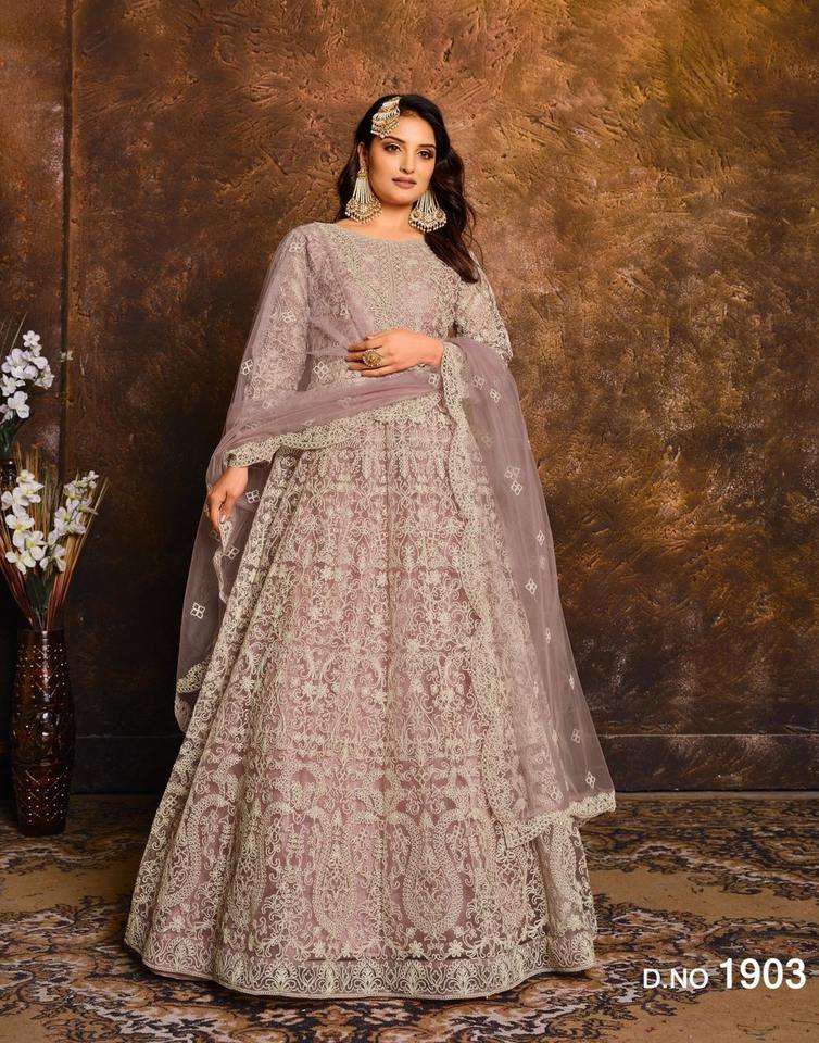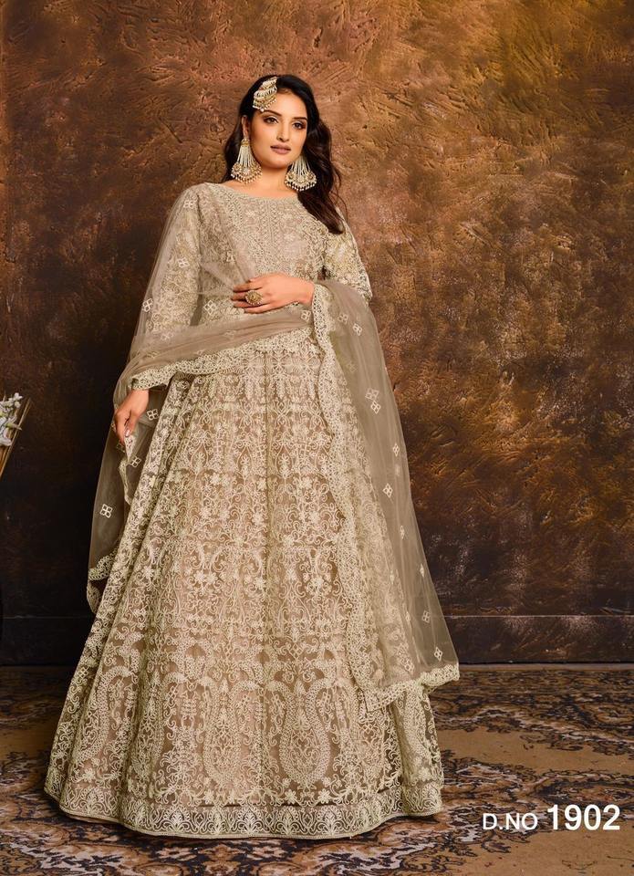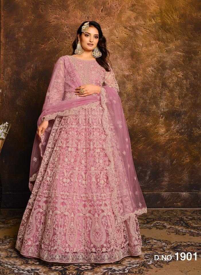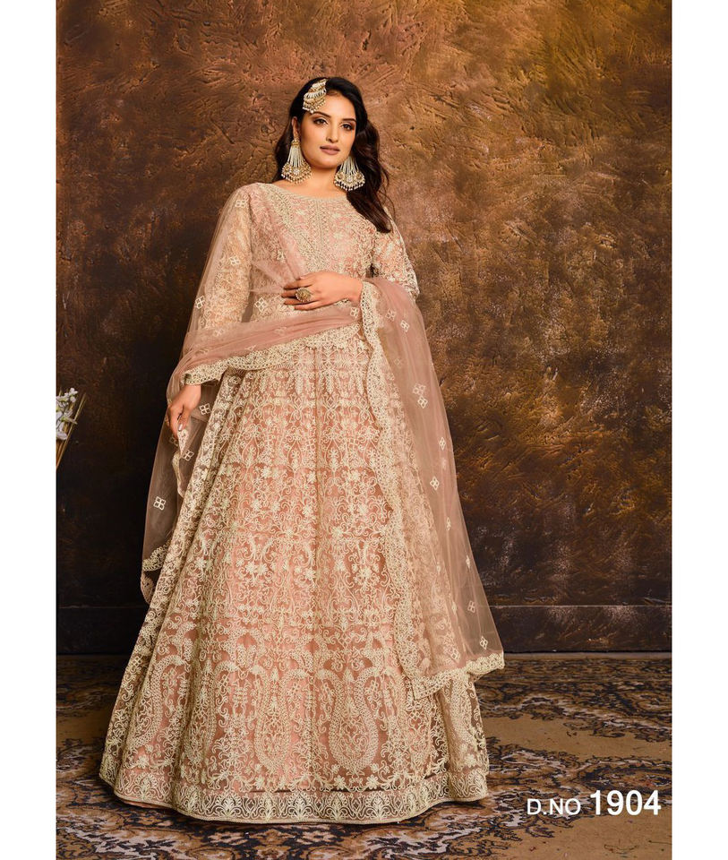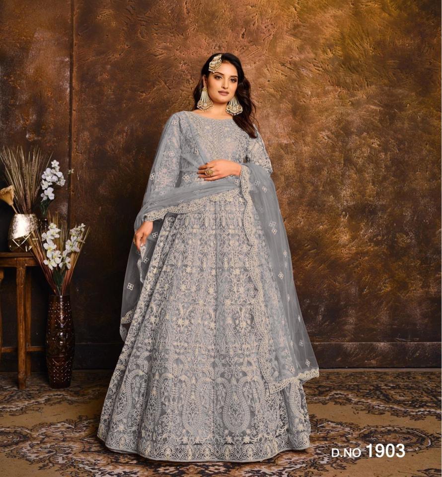 Indian&Pakistani Clothing Butterfly Net with Embroidery,Mirror Work Long Anarakali Suit with Embroidery Work Lace Border Dupatta
