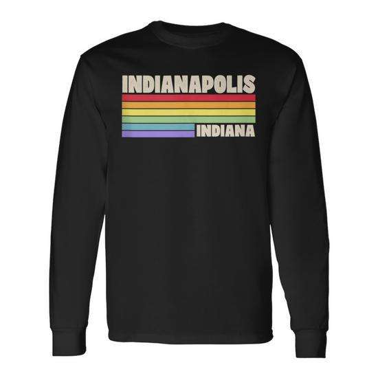 Maglietta a Maniche Lunghe con Bandiera Arcobaleno dell'Orgoglio Gay di Indianapolis, Indiana, Prodotto Promozionale