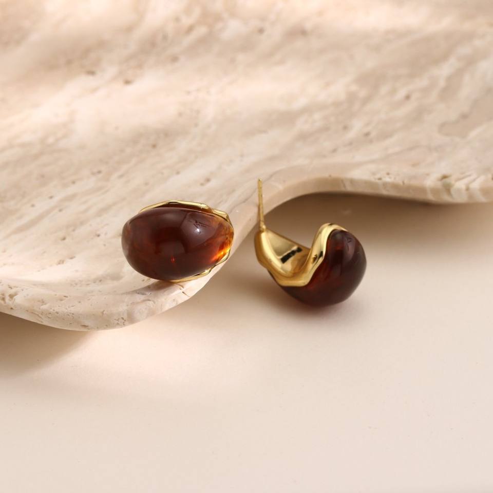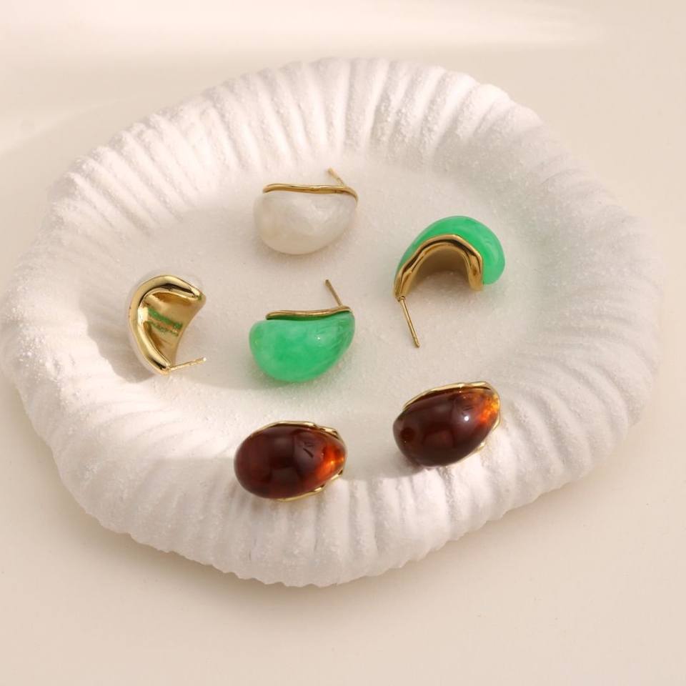 Orecchini a forma di goccia di Design individualistico placcati in oro 18K, con uno stile Ins e una sensazione di fascia alta. Orecchini in resina per le donne.